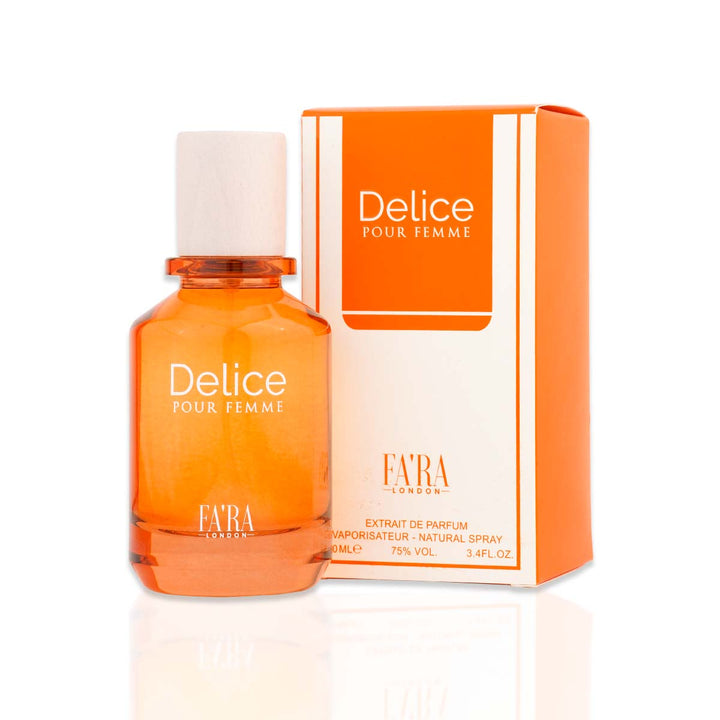 "Délice" از FARA London، ایک ایسی خوشبو جو حواس کو دلفریب نوٹوں کی لذت آمیز سمفنی سے محظوظ کرتی ہے۔ یہ پرفتن خوشبو خوشنما ٹاپ نوٹوں، دلکش دل کے نوٹوں، اور ایک گرم، مدعو کرنے والی بنیاد کا ایک ہم آہنگ امتزاج ہے، جو ایک حسی تجربہ تخلیق کرتی ہے جو پرتعیش اور آرام دہ ہے۔